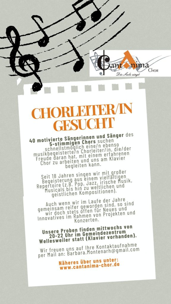 Wir sind voller Tatendrang und arbeiten gerade mit Hochdruck daran, einen neuen Chorleiter oder eine neue Chorleiterin zu finden – zwei tolle und völlig unterschiedliche Personen durften wir bereits kennenlernen.